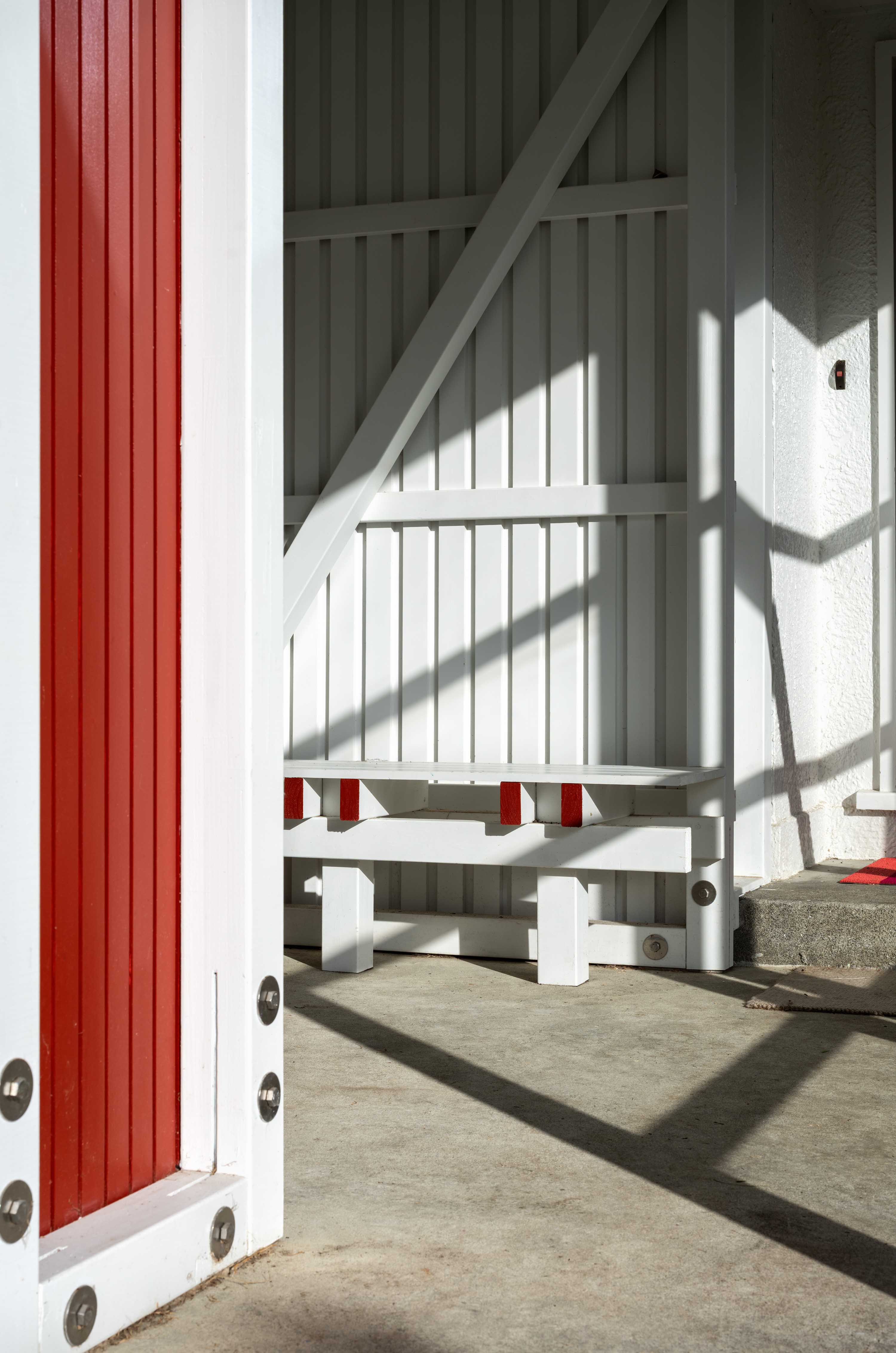 The westward changes also resolved the house’s most fundamental problem – its relationship to the beach itself. Where once you had to walk around to the front door to get in from the beach, now you can come up from the sand, rinse off, and head inside – either into the bedrooms or upstairs to the deck and living spaces. At the front a new carport entry porch completed the transformation of arrival. “Creating the porch where you can sit down, change your shoes, wash the sand off your feet, hang things up — that made the arrival so much more functional and friendly,” Gardyne says. “It was just too formal for the purpose of the house.”