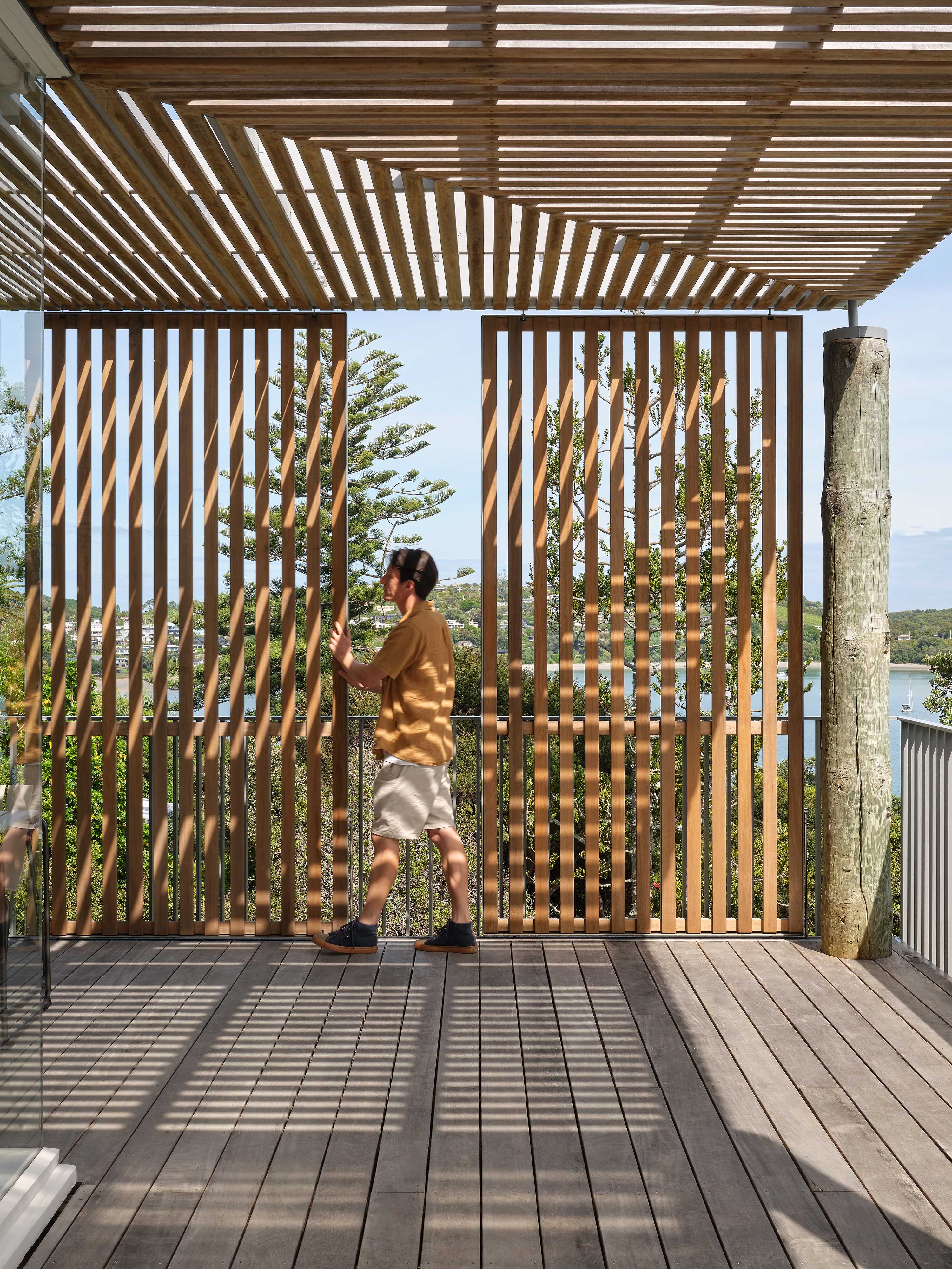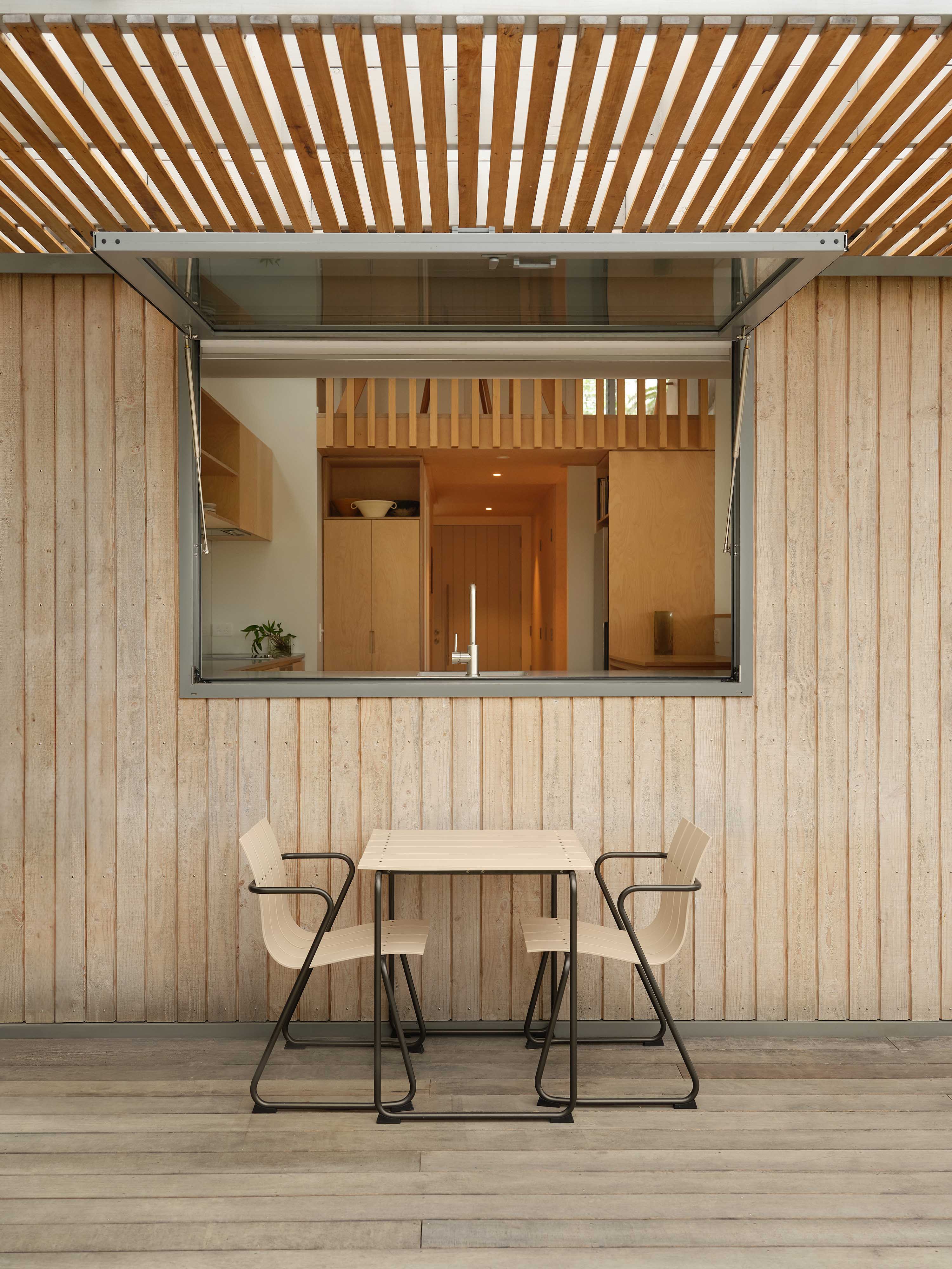 Throughout, they gently tidied and rationalised the edges, extending the deck where it had originally finished on a 45-degree angle, leaving a pole isolated in space holding up a corner of the pergola. They reclad and relined where necessary, but kept as much of the building as they could. The pine poles, for instance, had never been capped and were rotting from the tops. The builders cut them back to good timber, then topped them with steel spigot caps which provide a moment of lightness between the poles and the beam – a delightful moment that comes from a place of deep pragmatism.