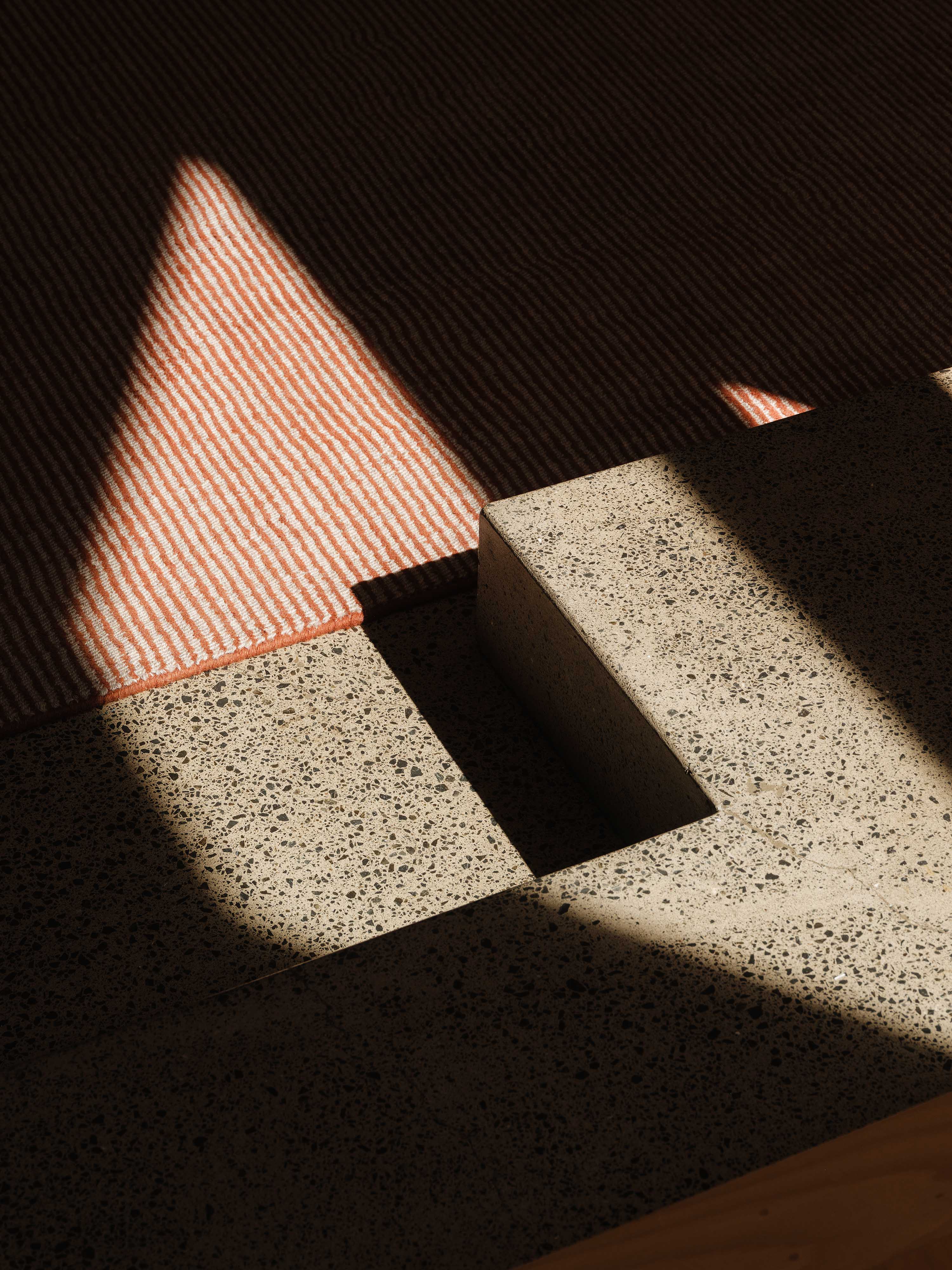 On that threshold, she created a pivot door, separating the bedrooms in the front of the house from the living space. To this, she added a small detail of her own, a Tasmanian blackwood architrave around the opening with a faceted edge. It’s a subtle move, but an important one, celebrating the character of the original house in a contemporary way. “The villa just had so much detail – I felt like it was a modern take on that,” she says. “I really like living on the threshold between old and new.”