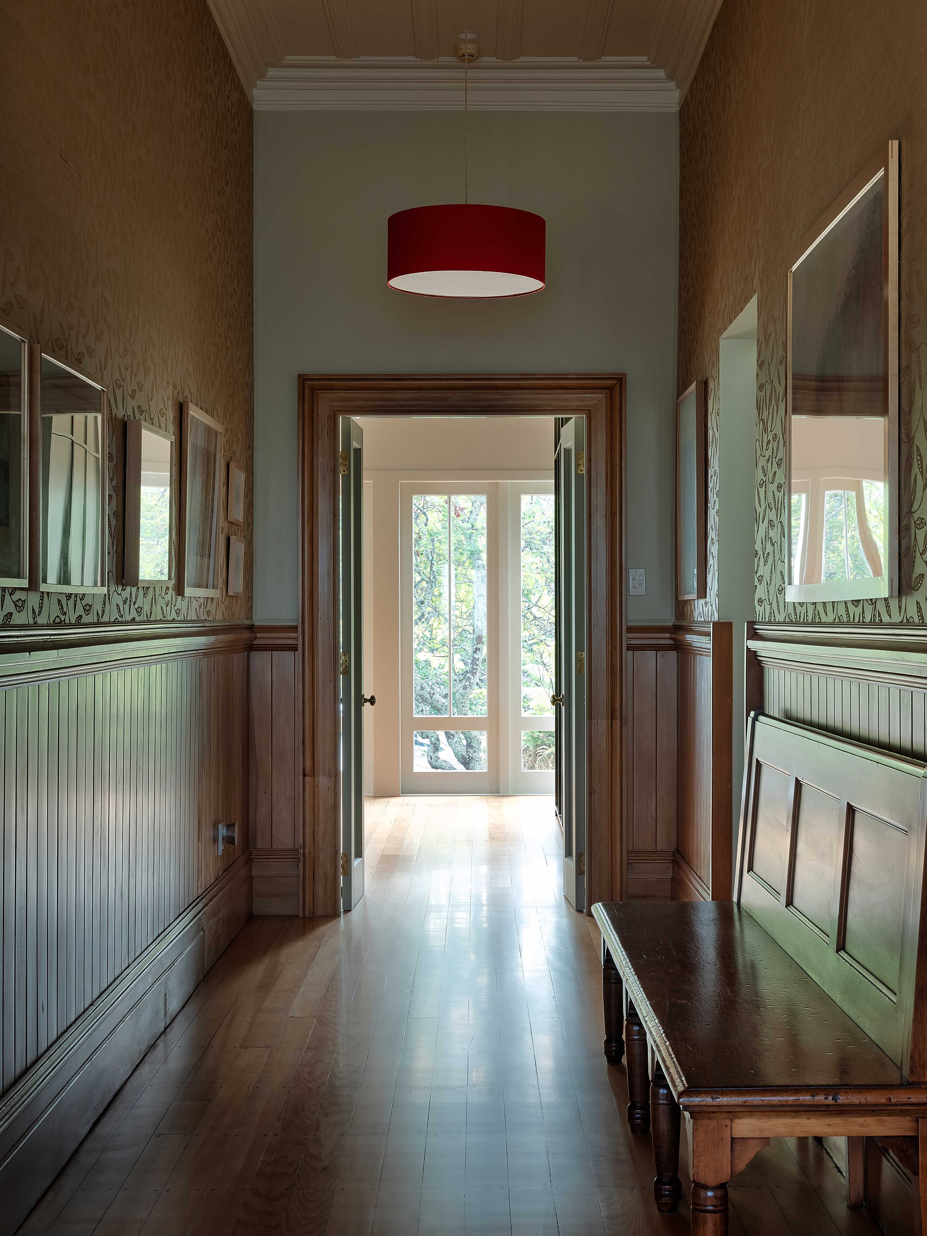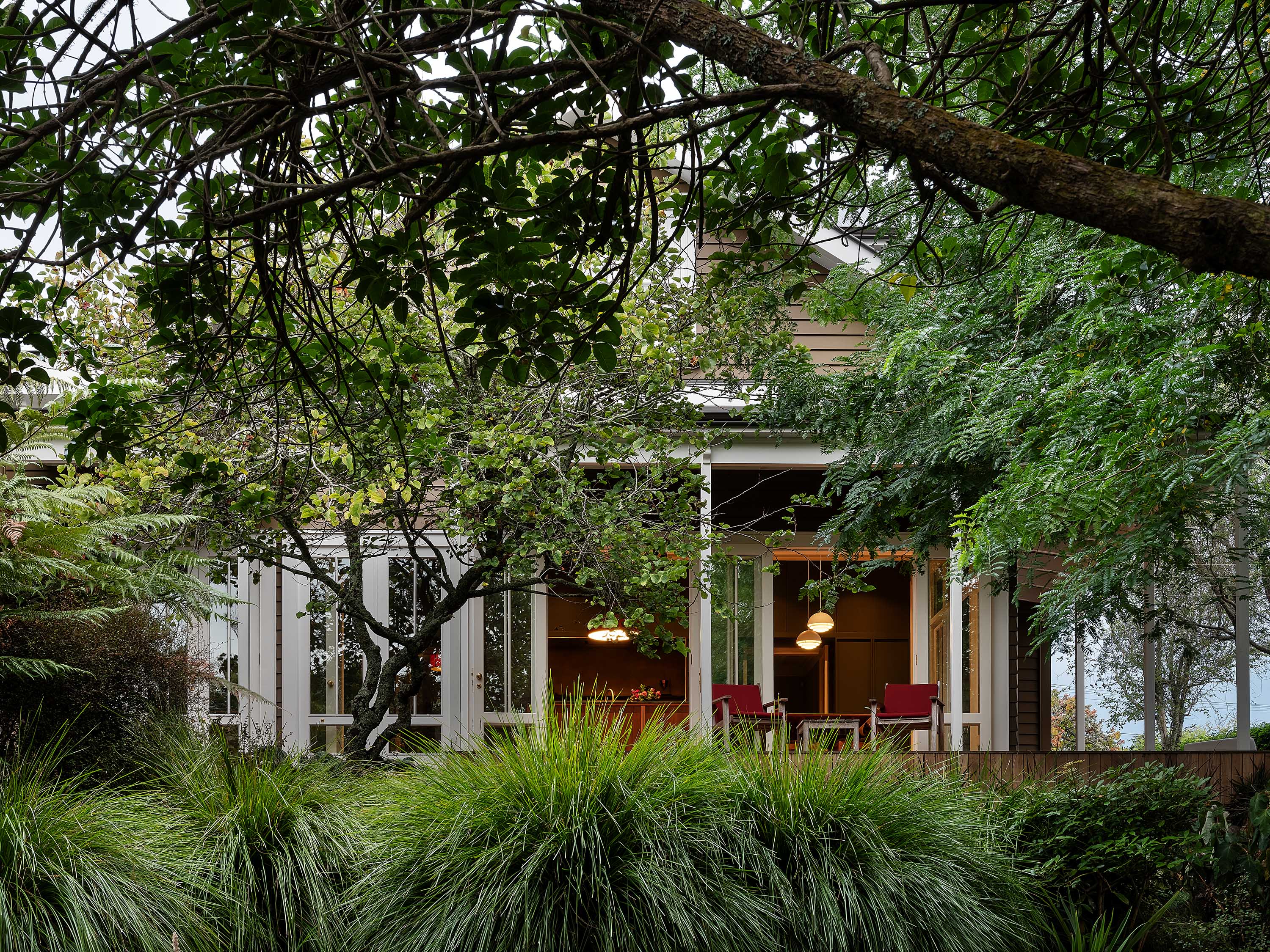 There’s an intentional break in one section of the verandah, where the planting pushes tight up against a tall window. That window sits at the end of the main hallway, so when you enter the house, your eye is drawn down the passage out to what appears as a glowing pool of green light. “Before we did that, the hallway was so dark,” says Mulla. “It’s a small thing, but I think it actually makes the biggest impact on the rest of the house.”