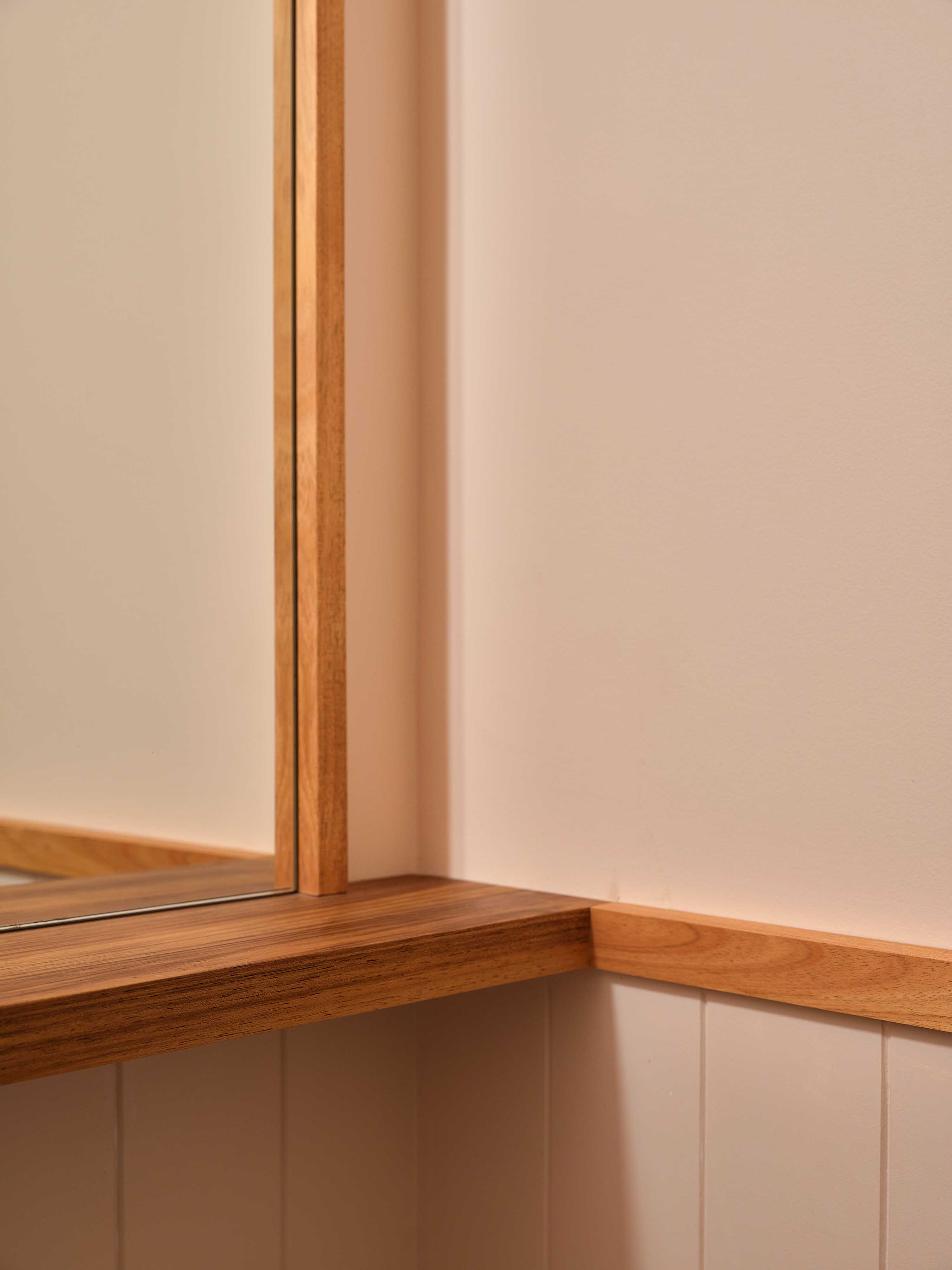 The team used classic detailing out here to tie new and old together, even hand-carving the underside of the roof with an asymmetric stop chamfer, a decorative edge seen in traditional woodworking. This depth of care (applied to a mere structural feature) gives you an idea of the skill and consideration that underpin the entire project. “There’s a lot of craft in the original bits to play with, and there’s joy in being able to include that,” says Mulla. He’s quick to credit the team from J.R. Hosking for that detailed execution. “They’re great builders to have onside. Nothing’s a problem with them, everything’s a solution.”