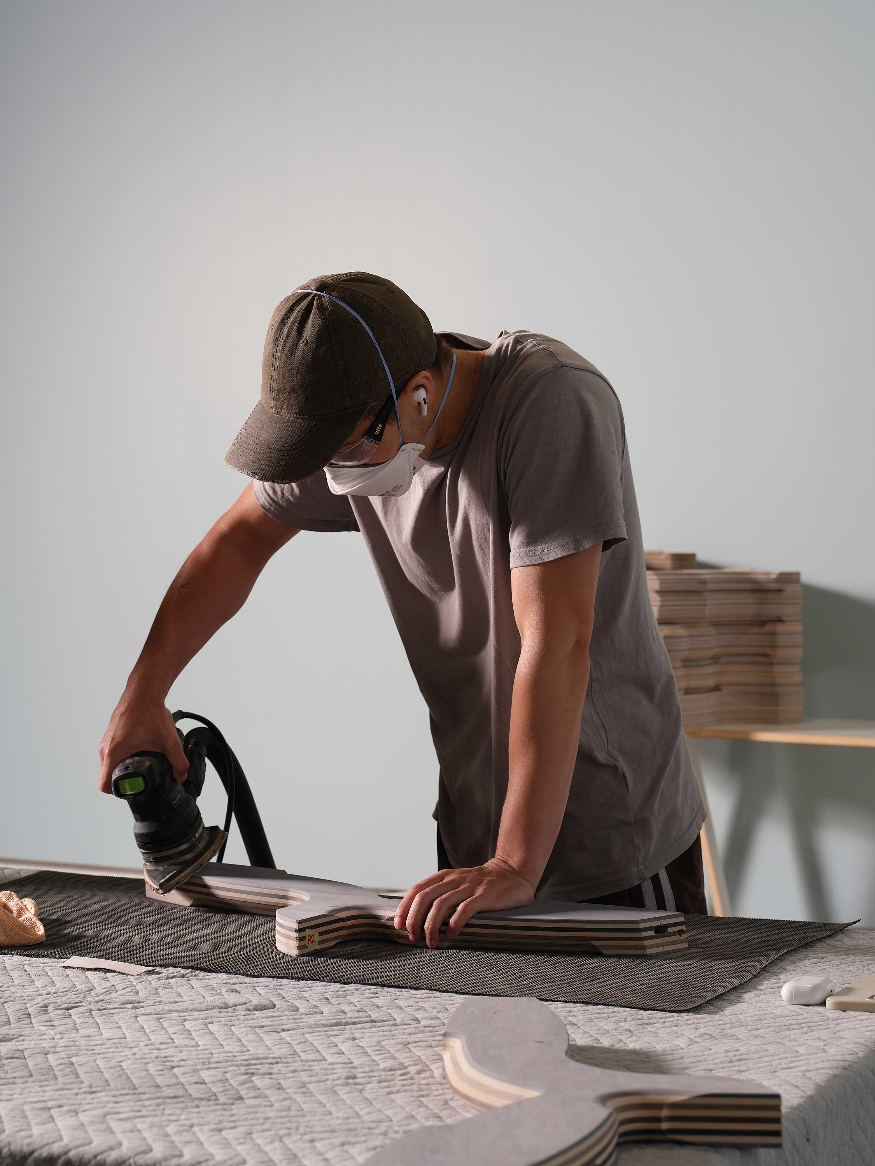 With 100 Chairs, he made a new chair in a single day in each place it went to. With Endgrained, he and a team of helpers constructed the whole exhibition inside Objectspace’s main gallery inside a week. It’s a furious, but fun, approach to exhibition making.