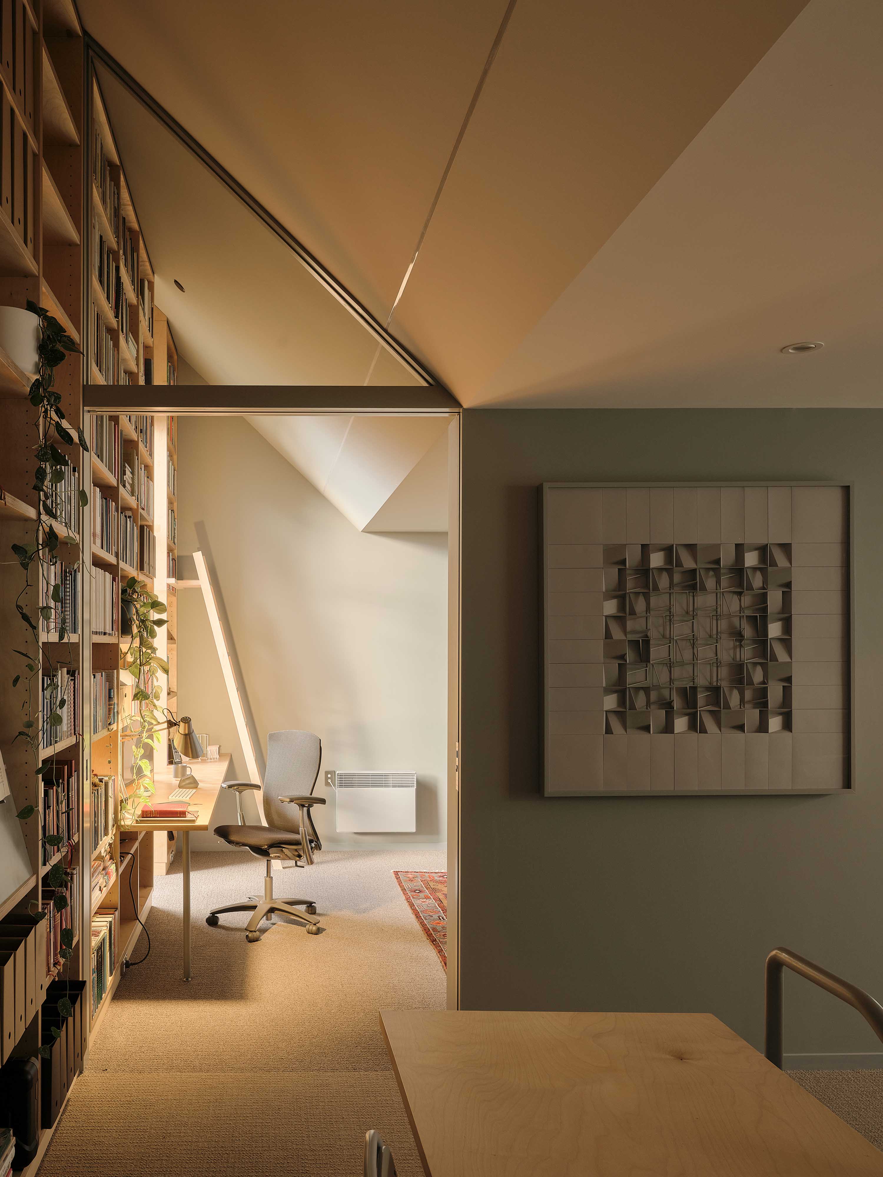 As noted, Andrew Barrie has an affection for Gothic Revival. “We wanted to make the great-great-grandchild of the original building,” he says, “so it has some resemblance, but acknowledges the passage of time.” As he puts it, they effectively took the idea of the original church and treated it like a cake, cutting a slice out of it. “But we cut out the weirdest possible slice.” There’s a familiarity to the tower. A rainscreen of white-painted fibre-cement boards speaks to the rough-sawn timber weatherboards of the church, while triangular roof shapes and gable pitches echo aspects of it exactly.